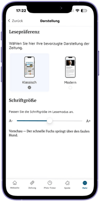 Wählen Sie jederzeit die Darstellung der Zeitung nach Ihrer persönlichen Lesepräferenz: